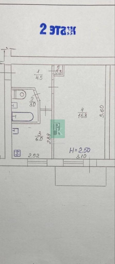 Высота потолков: 2,5 м