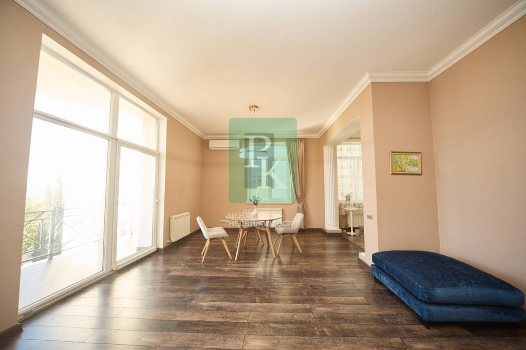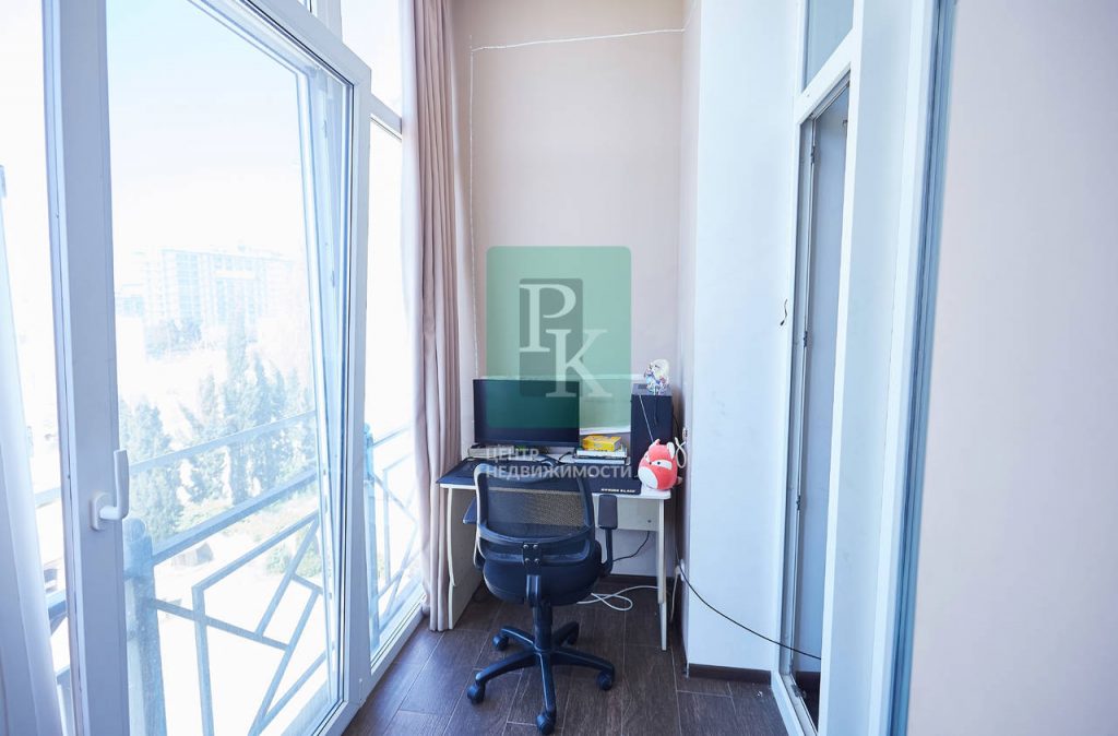 Уникальная 2-х комнатная квартира 100 м2 с 2 лоджиями на 2-м этаже 4-х этажного дома. Квартира может использоваться для проживания большой семьи или для аренды. Из просторного холла с гардеробной вы попадаете в большое пространство кухни – гостиной с панорамными окнами и 2 лоджиями. Виды на море, Аквамарин, Парк Победы. Уютная спальня с застекленной лоджией – кабинетом, в гостиной одна лоджия застеклена, другая нет – идеально для крымских вечеров с видом на море. Просторный санузел с ванной отделан качественной плиткой. Высокие потолки и панорамные окна. создают ощущение пространства, света и покоя. На закрытой придомовой территории есть уютная беседка с мангалом, парковочные места.