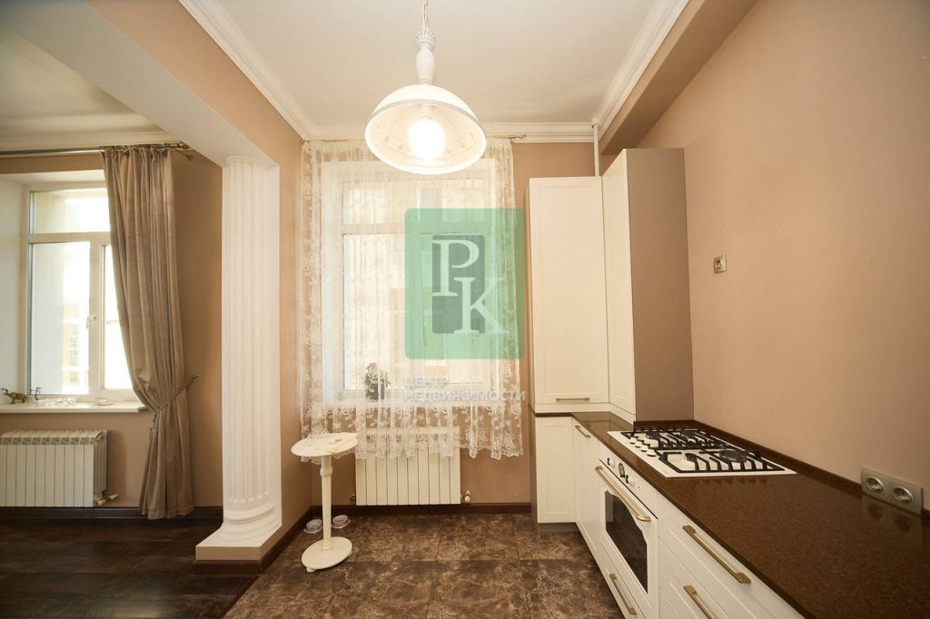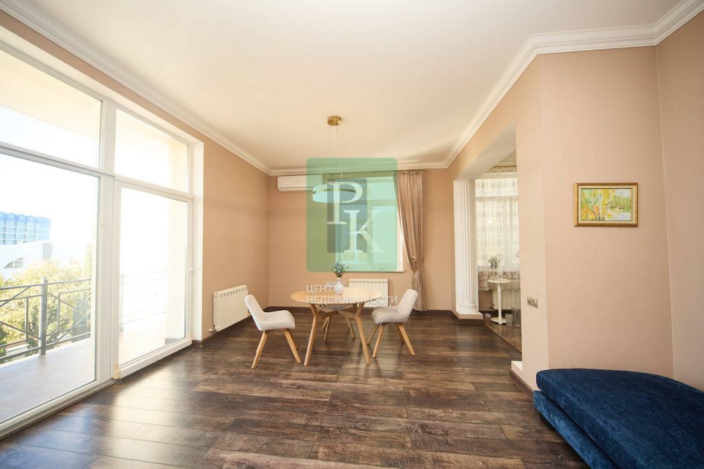 Двухкомнатная квартира общей площадью 100 м2 , с видом на море на 2/4 этаже дома, с просторной кухней 14 м2. Рядом с Парком Победы, отелем 5* “Аквамарин”, пляжем!