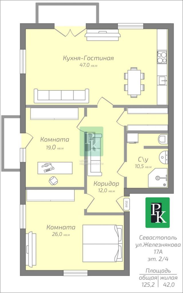 Общая площадь: 125,2 м²