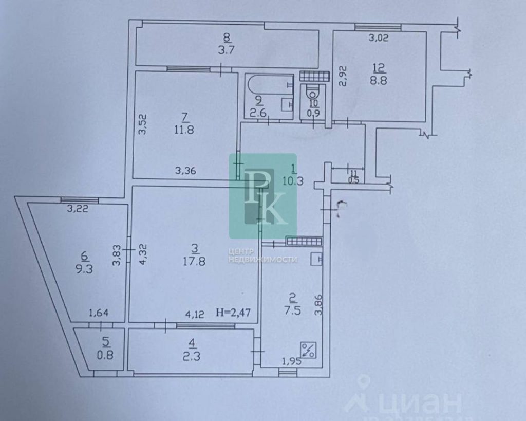 Четырехкомнатная квартира 82 м2, на 1/9 этаже дома. Расположена в г. Севастополь, Нахимовский район, ул. Громова, д. 62.