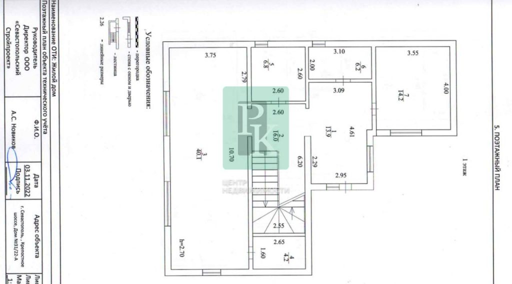 Дом 295,2 м² на участке 10 соток, двухэтажный. Расположен в г. Севастополь, Гагаринский район, Крепостное шоссе, 31/22-А. Коммуникации: электричество, вода, газ, канализация.