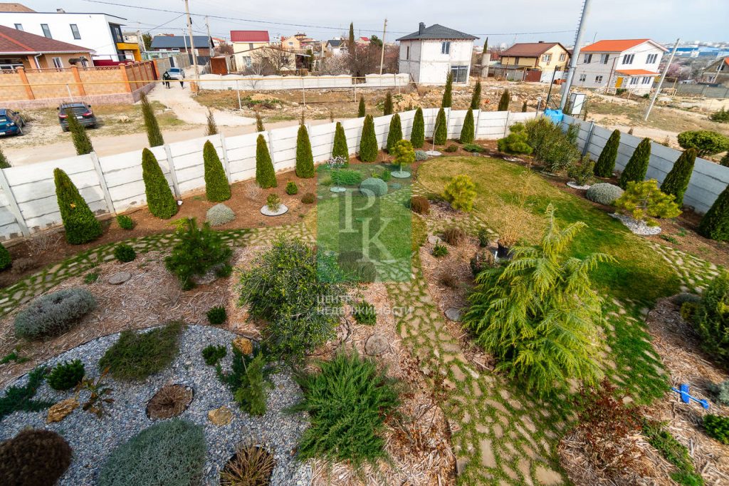 Участок ухожен, двор вымощен плиткой. На участке растут декоративные хвойные растения. На этом участке вы с удовольствием будете проводить время и наслаждаться своим личным ботаническим садом.