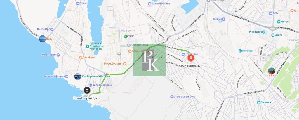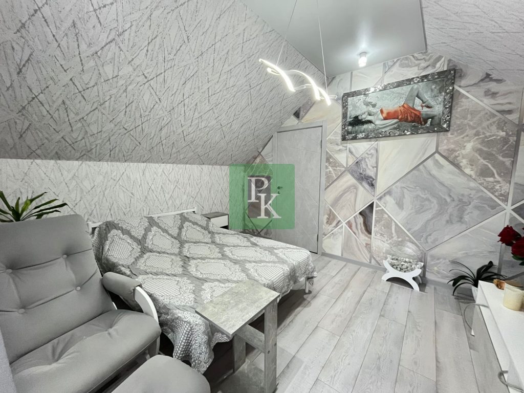 Дом находится в шаговой доступности от остановки общественного транспорта, рядом школа и детский сад, магазины. На автомобиле до галечных пляжей Казачьей бухты – 10 минут.