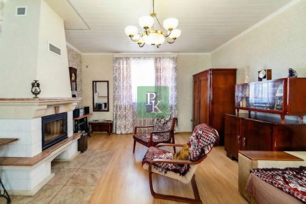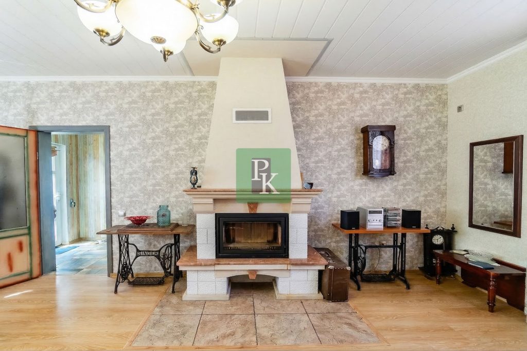 винтажный интерьер с мебелью в стиле СССР и настоящим камином от донецких мастеров — он обогревает и зал, и кухню;