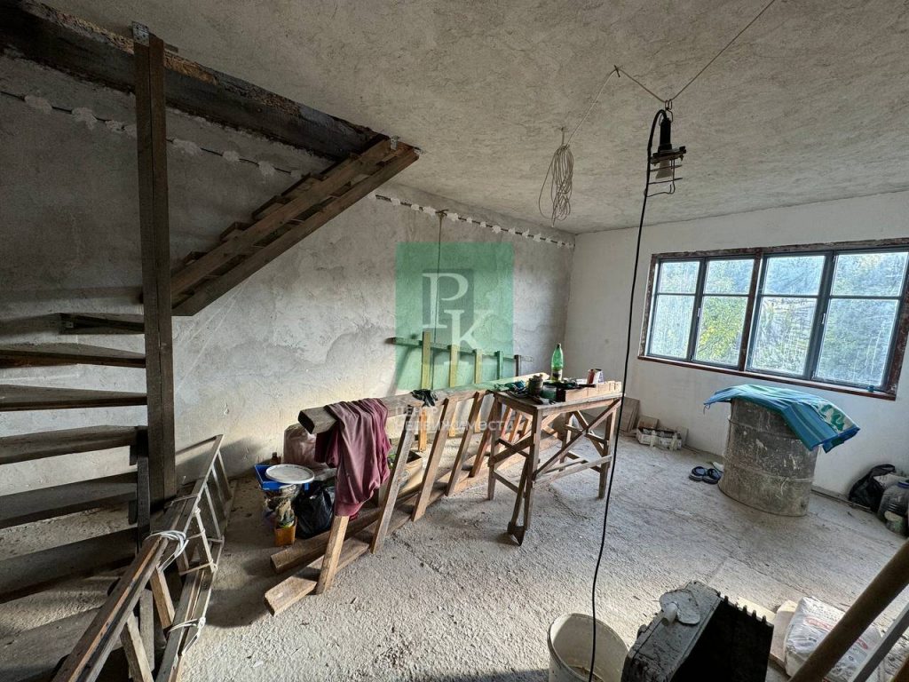 Дом 80 м² на участке 4,5 сотки, двухэтажный. Расположен в г. Севастополь, СНТ “Мекензиевы горы”. Коммуникации: электричество, водоснабжение постоянное, канализация выгребная яма.