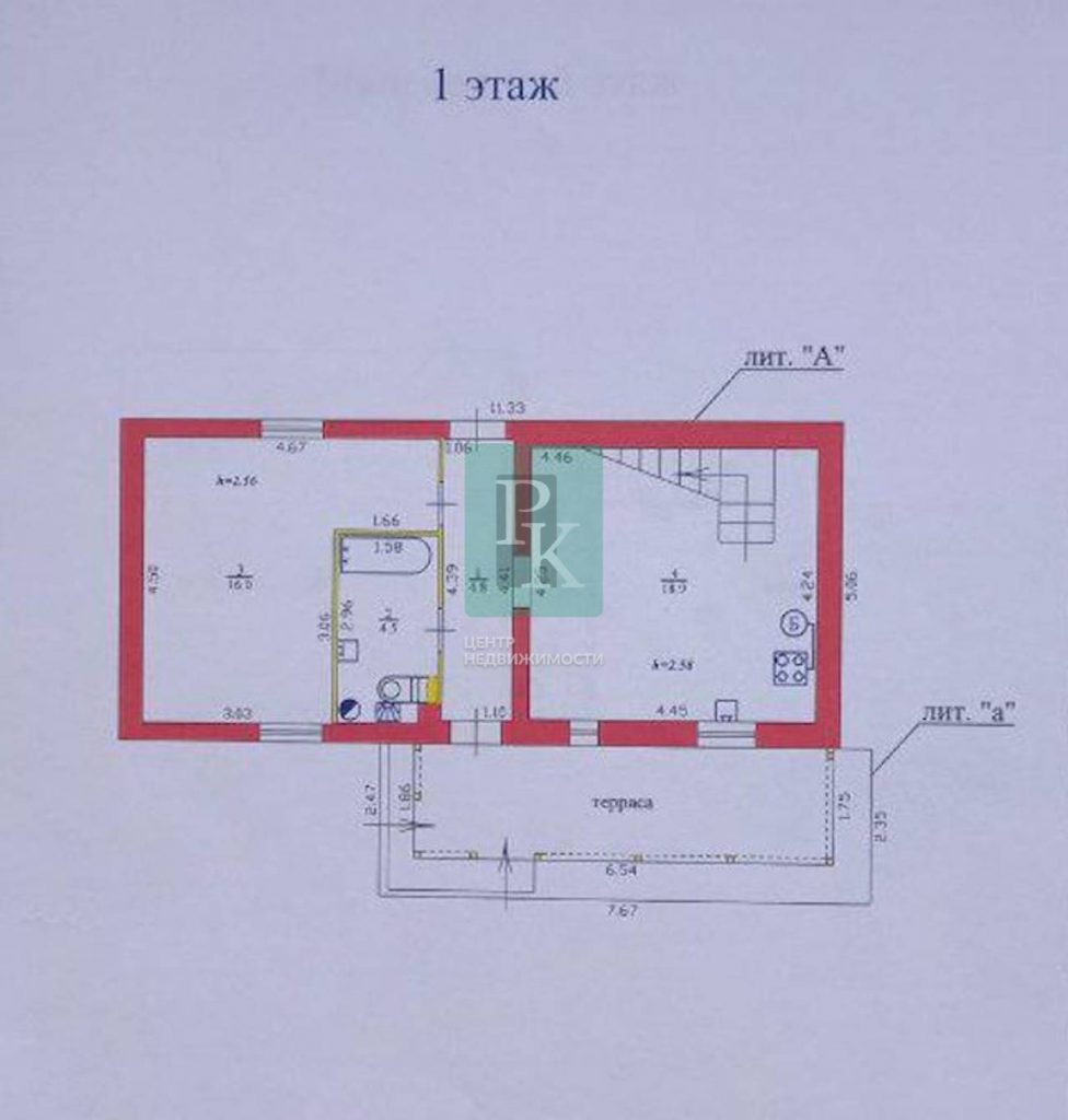 1 этаж: (каменный): кухня-гостиная, комната, санузел, коридор, терраса