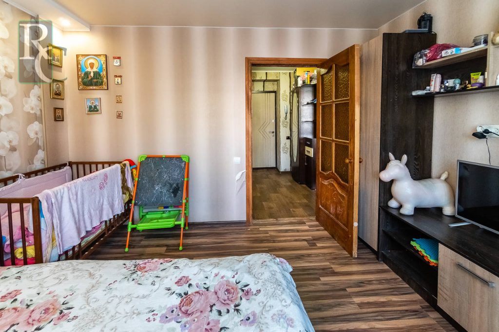 Квартира располагается на первом этаже пятиэтажного блочного дома, с высоким цоколем. Есть возможность сделать пристройку и расширить площадь. Общая площадь составляет 45 м2, жилая – 30 м2, кухня – 5 м2 .