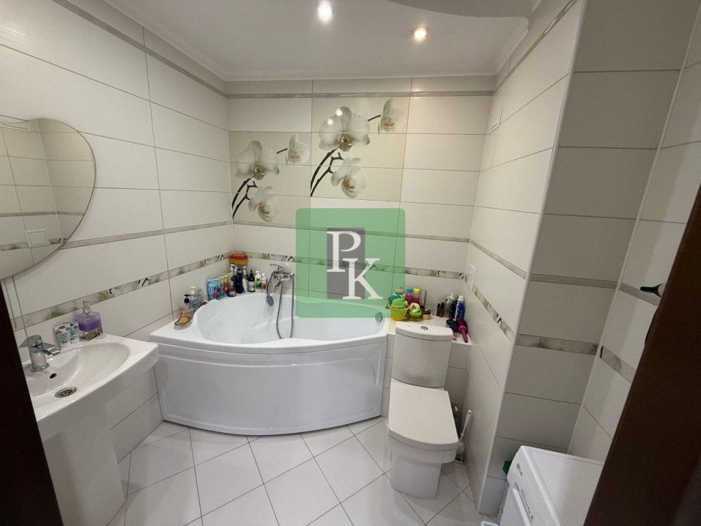 Общая площадь квартиры с учетом балкона – 65,9 м.кв. Светлая комната – 17,5 м.кв. с выходом на просторный, широкий, застекленный балкон – 4,1 м.кв. с которого открывается вид на море. Комната – 13,8 м.кв. Кухня – 12 м.кв. квадратной формы. Коридор – 12 м.кв. с большим вместительным шкафом. Санузел раздельный – 4,5 м.кв. и 1,7 м.кв, высота потолков – 2,7 м.