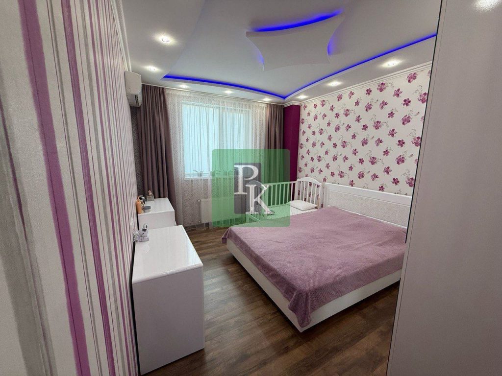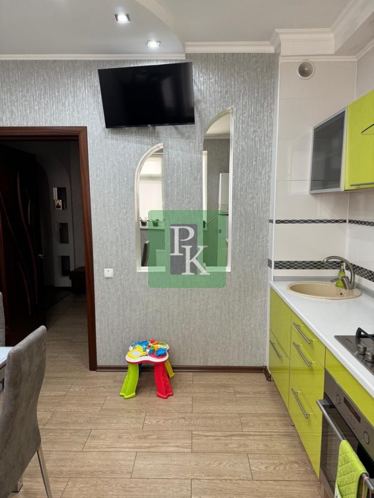 Двухкомнатная квартира 65,9 м2, на 7/10 этаже дома с просторной кухней 12 м2. Расположена в г. Севастополь, Гагаринский район, ул. Руднева, д. 26/3.