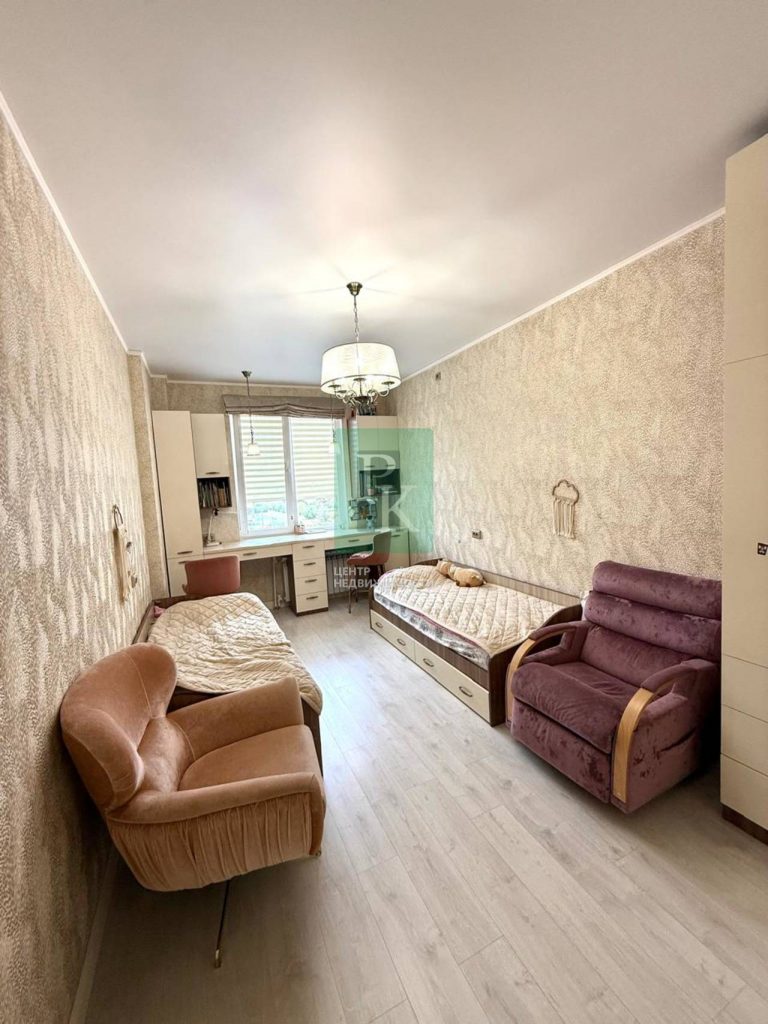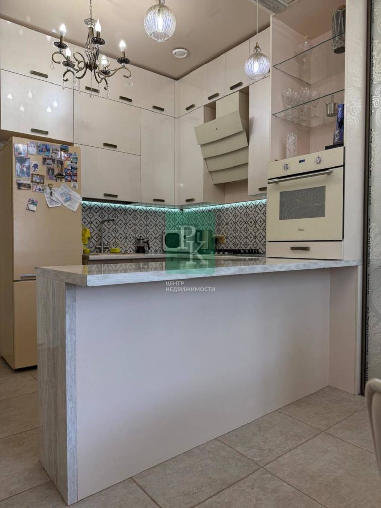 В квартире сделан дизайнерский ремонт с использованием качественных материалов. Кухня разделена на 2 зоны. Также установлена система теплых полов.