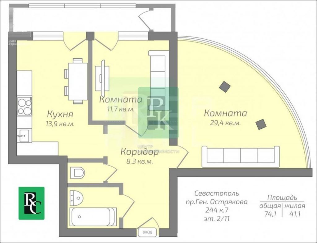 Двухкомнатная квартира! 74 м2, на 3/11 этаже дома. Расположена в г. Севастополь, Ленинский район, пр-кт Генерала Острякова, д. 244/7