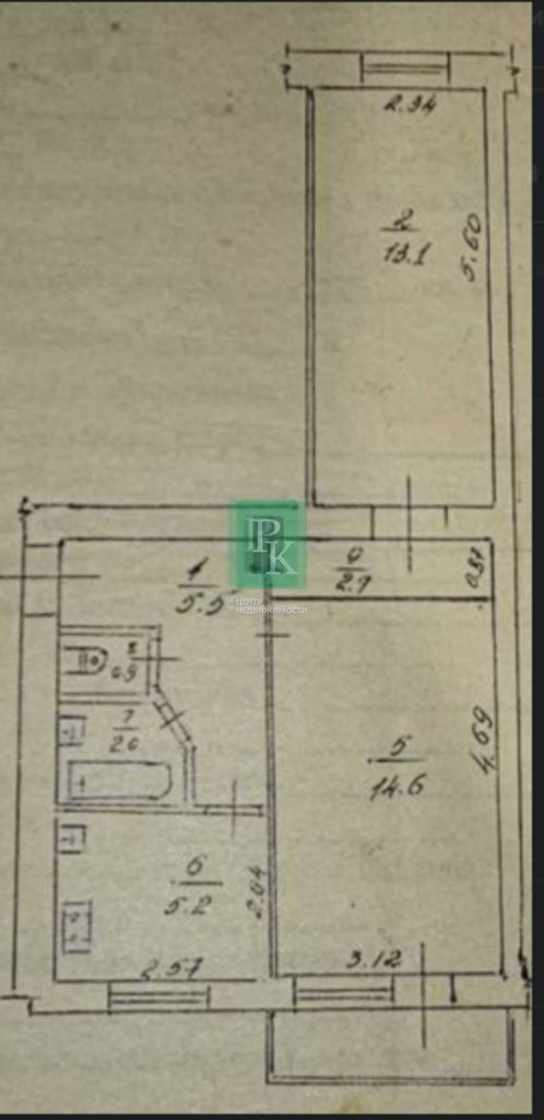 Пятиэтажный дом построен в 1975 году из экологических инкерманских блоков, что обеспечивает хорошую шумо- и теплоизоляцию. Квартира расположена на самом тихом пятом этаже. Комнаты площадью 14,6 кв. м. и 13,1 кв. м. Общая площадь – 42,8 кв м.