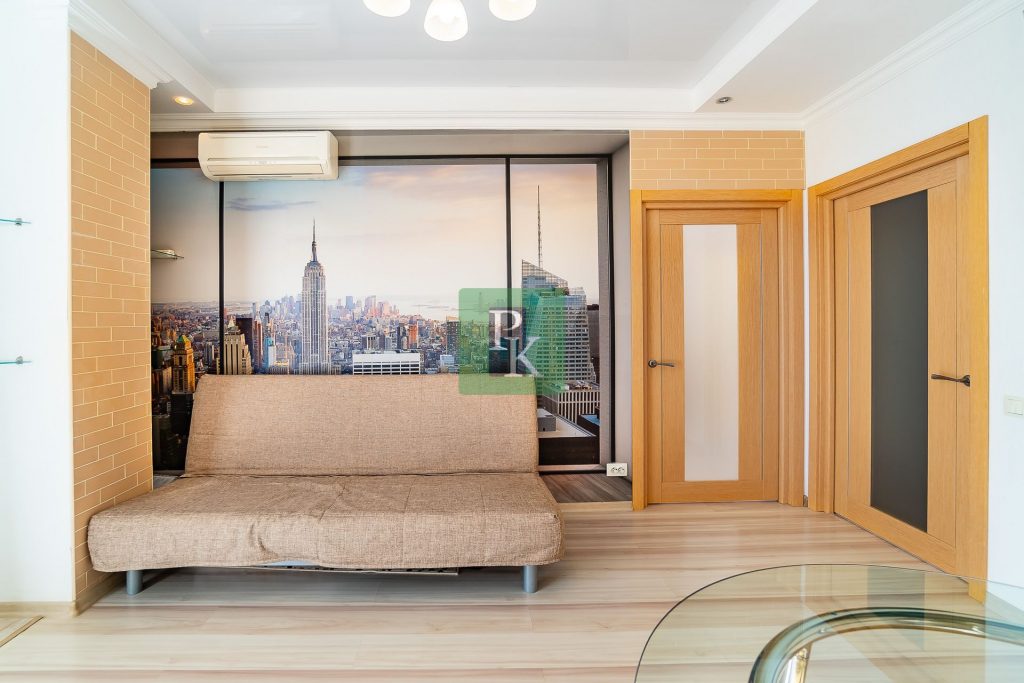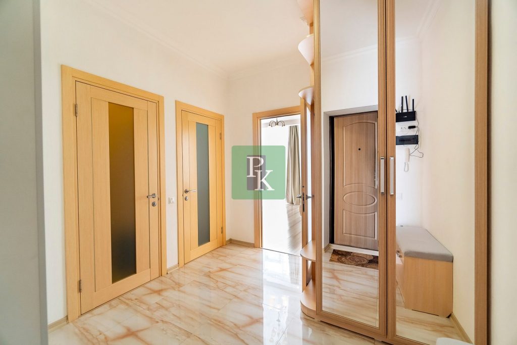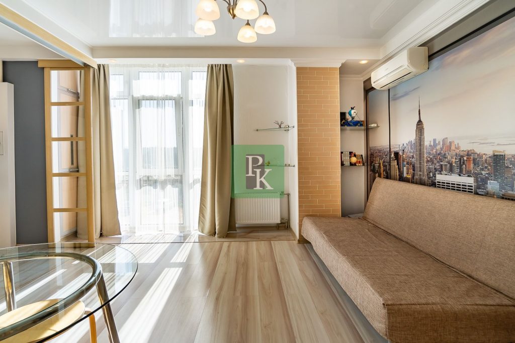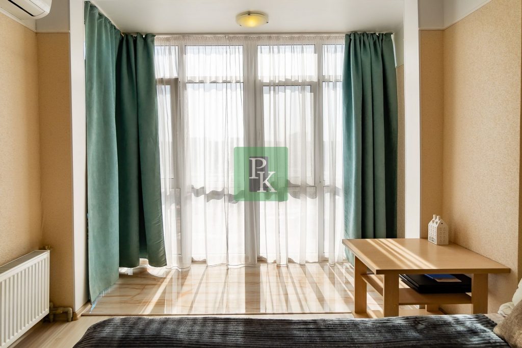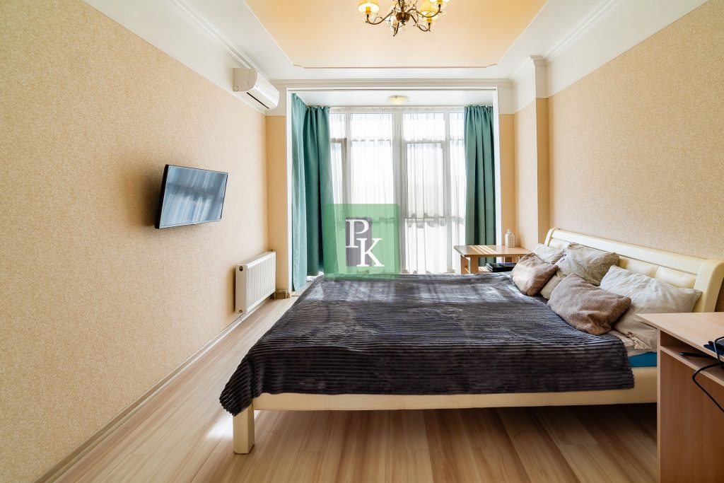 Однокомнатная крупногабаритная квартира 57,5 м2, на 3/10 этаже дома, с просторной кухней . Расположена в г. Севастополь, Гагаринский район, пр-кт Античный, д. 64/2