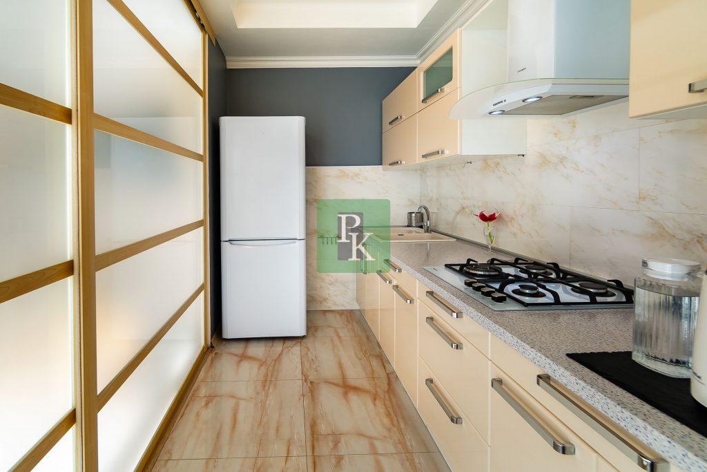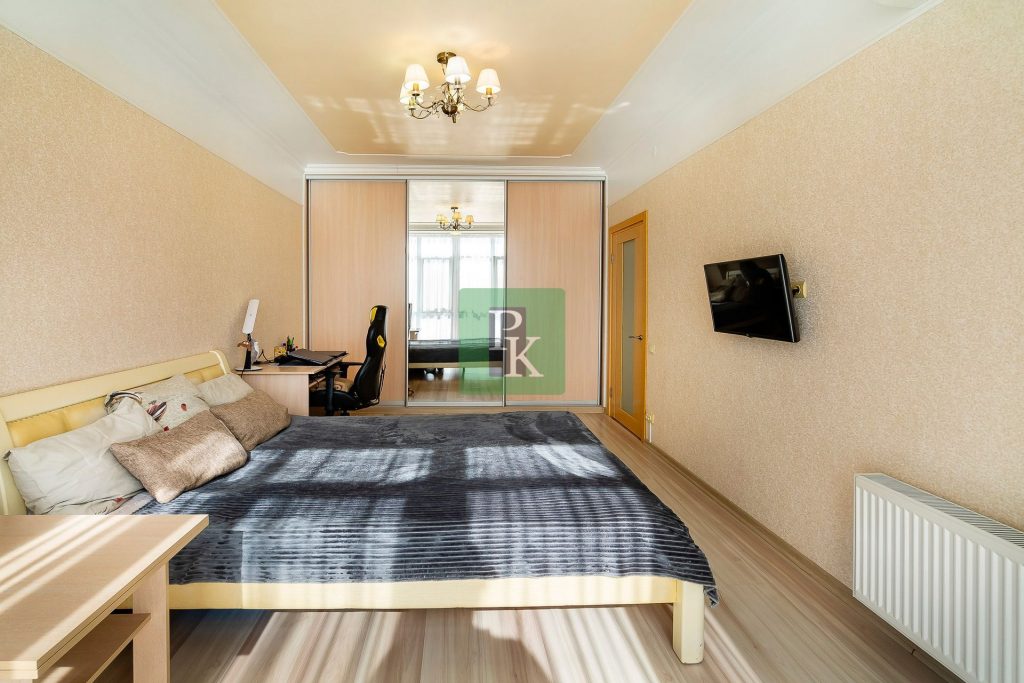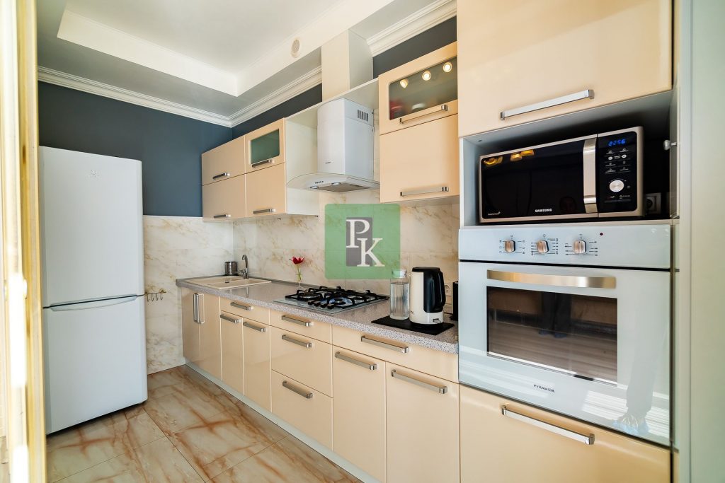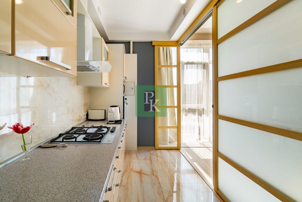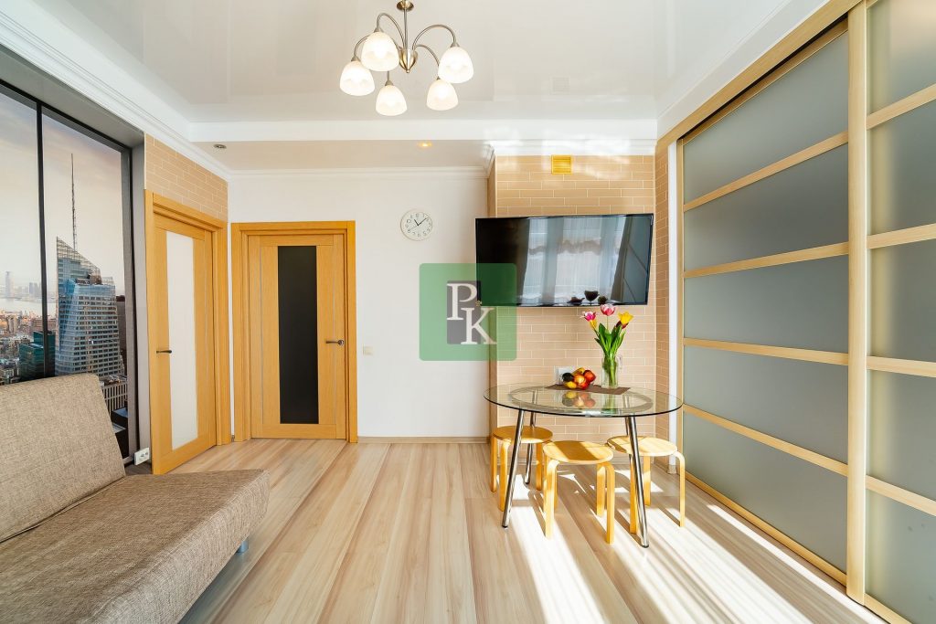 Однокомнатная крупногабаритная квартира 57,5 м2, на 3/10 этаже дома, с просторной кухней . Расположена в г. Севастополь, Гагаринский район, пр-кт Античный, д. 64/2