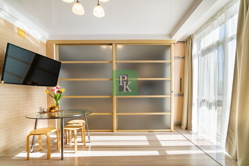 Панорамные окна в пол придают квартире простор и дополнительный комфорт.