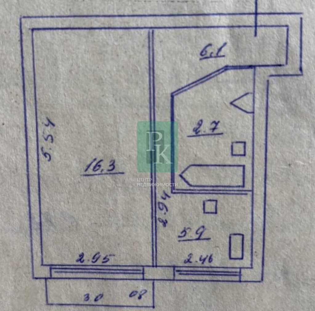 Общая площадь квартиры составляет 31 м2. Жилая площадь – 16,3 м2.