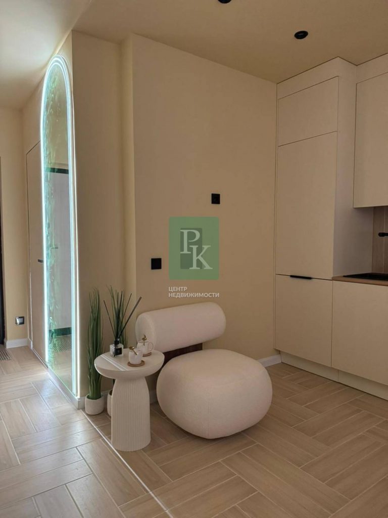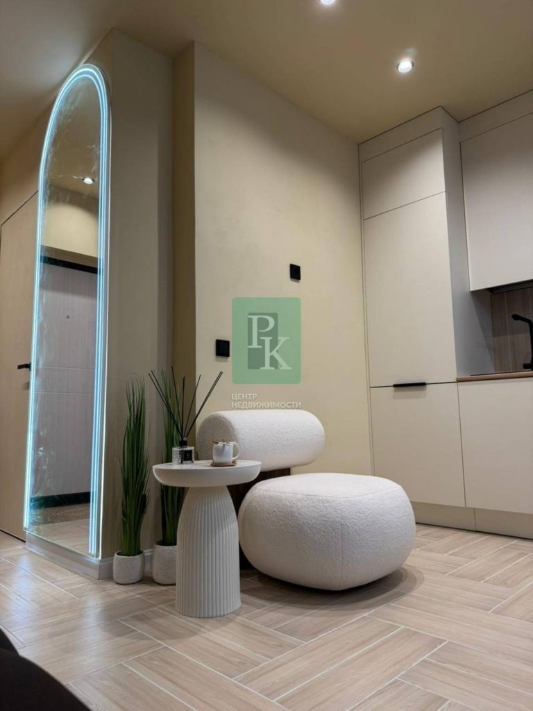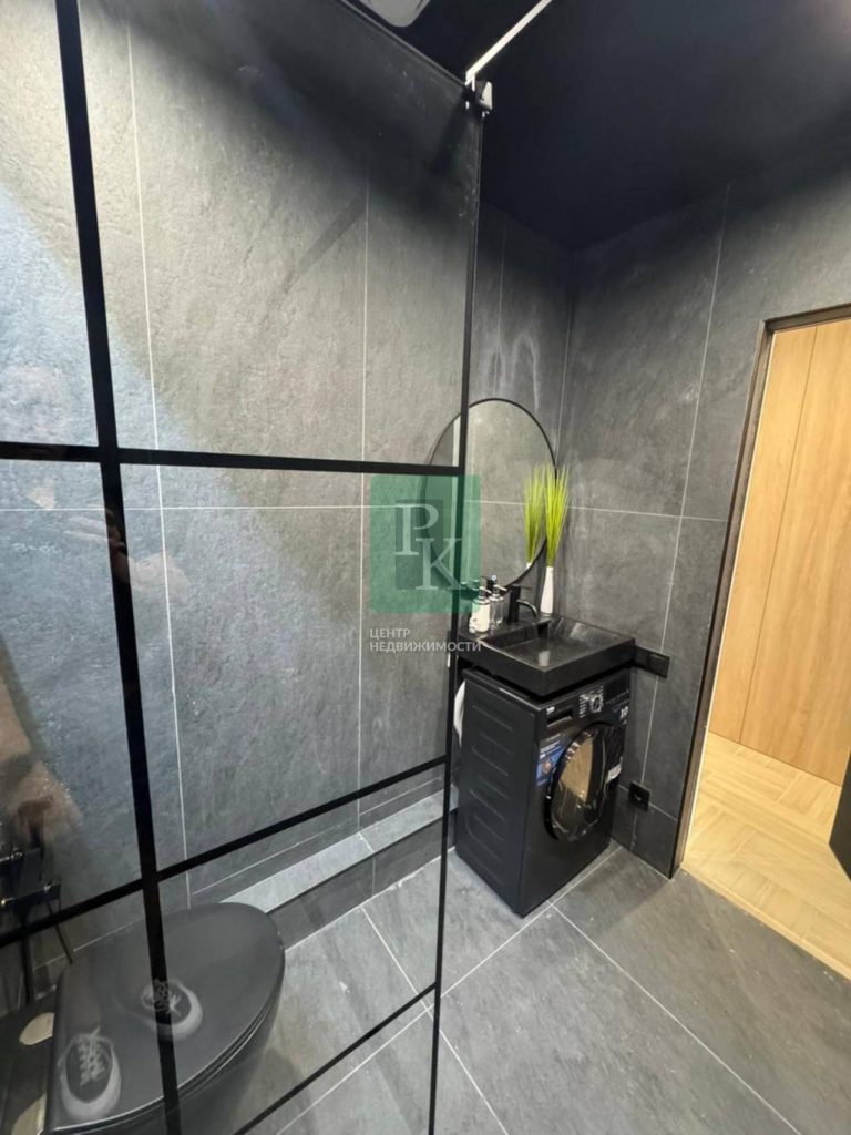 Квартира с дизайнерским ремонтом. Общая площадь квартиры 29,7 м2. Светлая комната – 24,1 м2. Зона кухни – 5 м2. с выходом на балкон – 4,2 м2. Санузел совмещенный – 4,1 м2, высота потолков – 2,72 м.