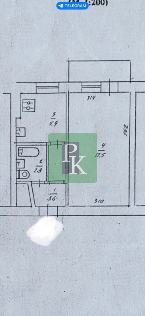 Общая площадь квартиры – 29.8 м2, жилая площадь — 17.5 м2