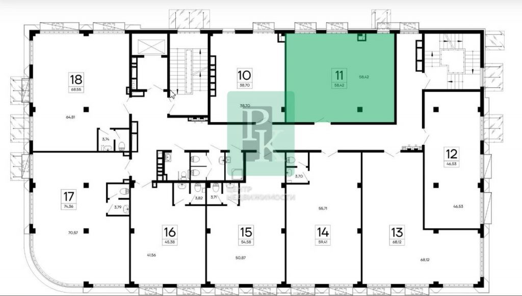 Офисные помещения различной площади от 38 м² до 74 м² в Симферополе. В продаже офис 58,42 м² на 3-ем этаже 5-ти этажного Бизнес-центра «Крымский».