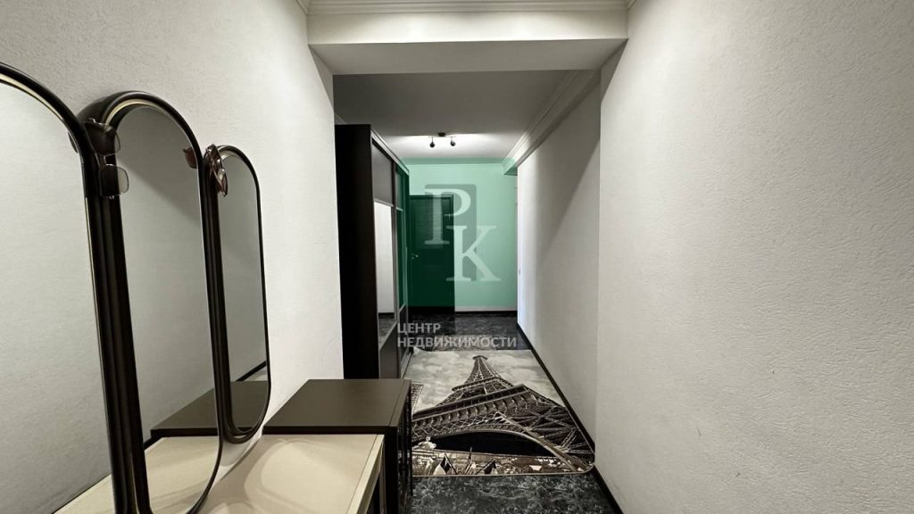 Просторная прихожая с керамическим полом, консоль зеркалом Лизбон. Также имеется вместительный шкаф купе! В каждой спальне сплит система зима-лето. Телевизоры в кухне-столовой и в спальне с лоджией. Санузел просторный совмещенный.