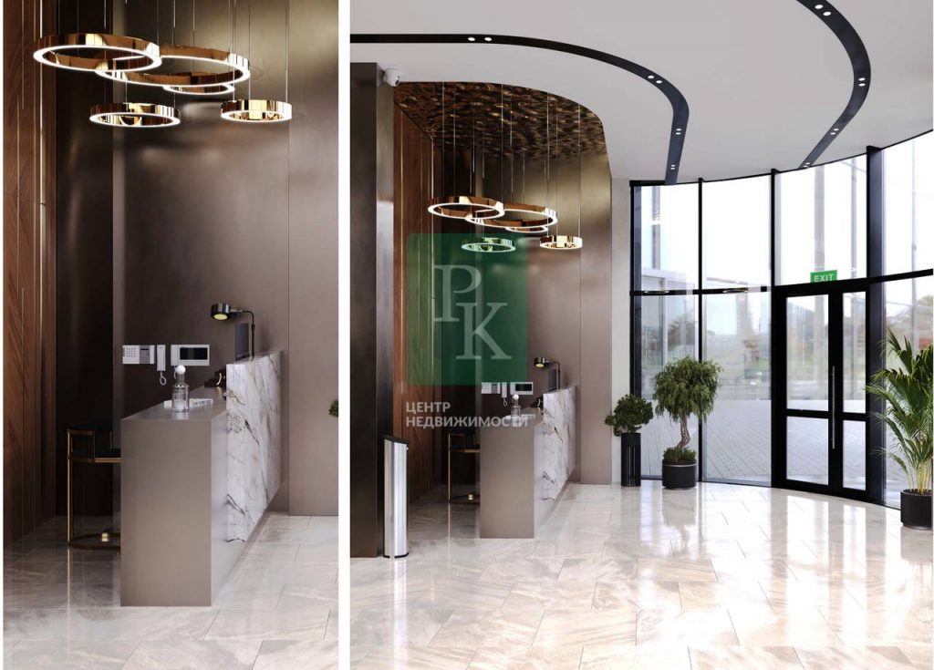 В здании Бизнес-центра организовано несколько входных групп, а также установлен панорамный наружный лифт. На первом этаже будет расположен вестибюль с ресепшн и кафе. В отделке всех помещений общего пользования используются высококачественные современные материалы.