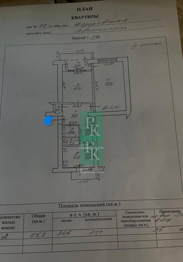 Двухкомнатная квартира 52 м2 на 4/5 этаже дома. Расположена в г. Севастополь, пос. Любимовка, ул. Федоровская, 47