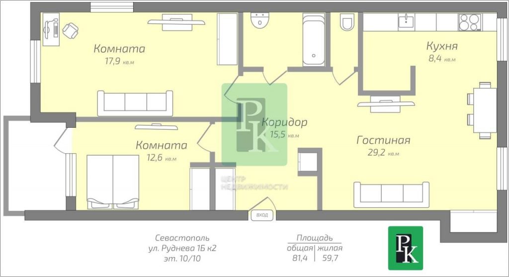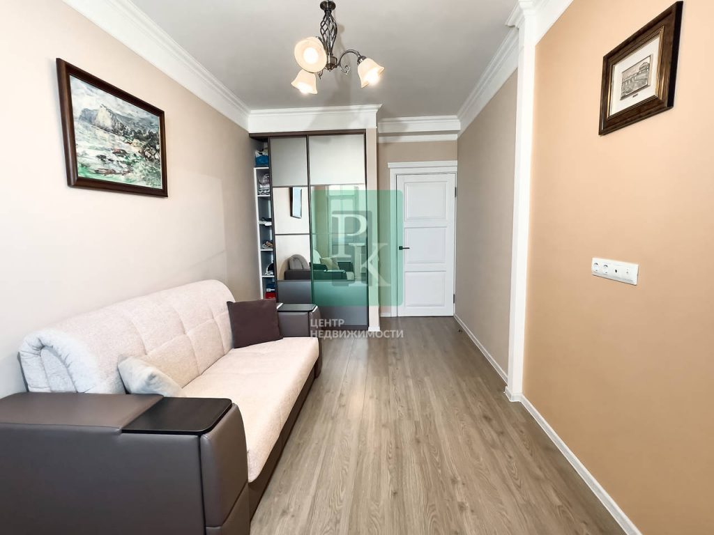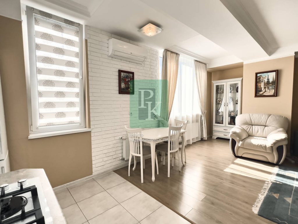 Трехкомнатная квартира совокупно площадь 81.4 м2 на 10/11 этаже дома, с прекрасными видовыми характеристиками Расположена в г. Севастополь, Гагаринский район, ул. Репина, 1Б/2.