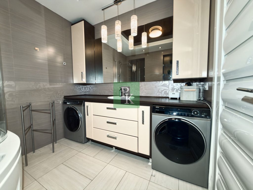 Минимализм, сдержанность, контрастность – такое сочетание делает квартиру желанным объектом даже для самых придирчивых покупателей и она ответит взаимностью: укомплектована высококлассной техникой (двухконтурный котел Vaillant теплые полы, сплит-система), отделочные материалы известных мировых производителей.
