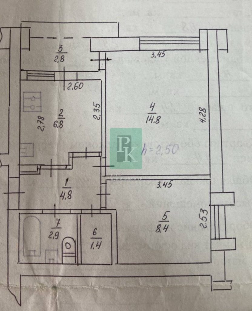 Двухкомнатная квартира 42 м2, на 7/8 этаже дома. Расположена в г. Севастополь, Гагаринский район, ул. Адмирала Юмашева д.13.