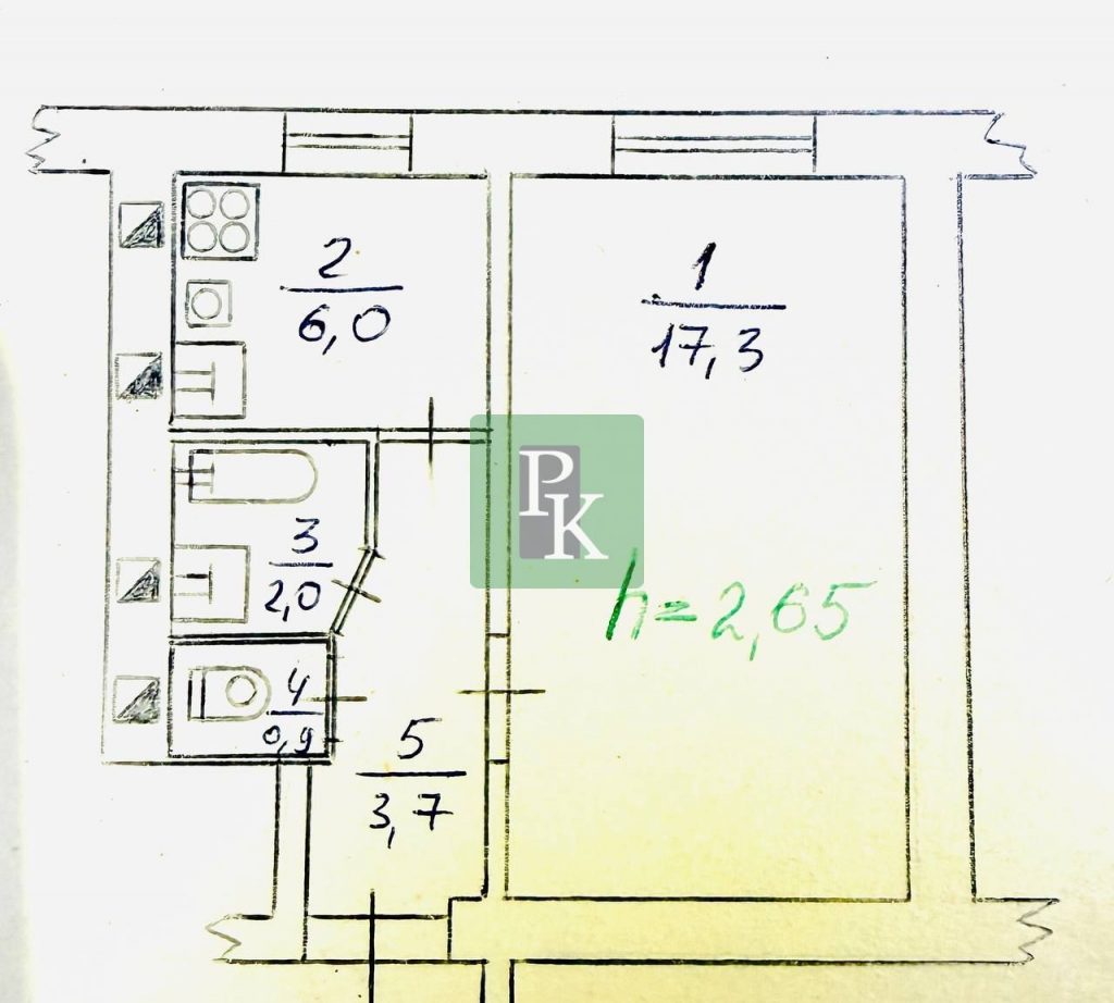 Высота потолка: 2,65 м