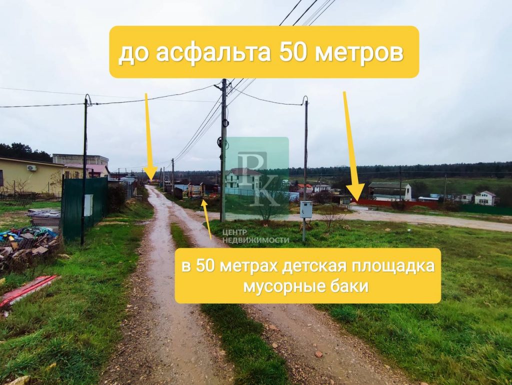 На участок ведет свежая асфальтированная дорога.