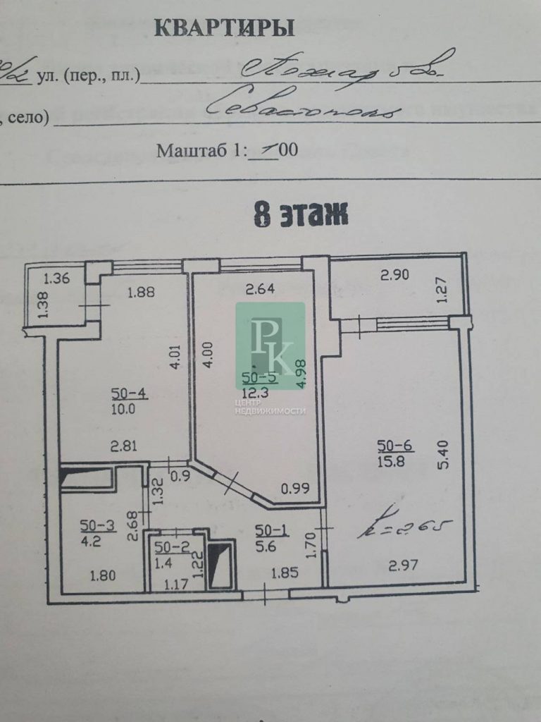 Общая площадь квартиры составляет 52.8 метров. Одна комната площадью 15,8 м2, а другая площадью 12,3 м2. В квартире есть просторная кухня площадью 10 м2; ванная 4.2 кв.м.