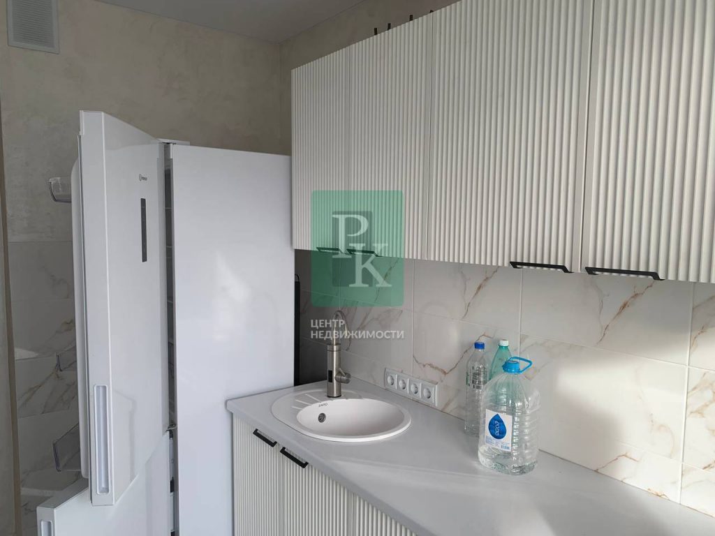 Трехкомнатная квартира 74.1 м2, на 6/17 этаже дома, с просторной кухней 12 м2. Расположена в г. Севастополь, Гагаринский район, ул. Астана Кесаева, д. 15.