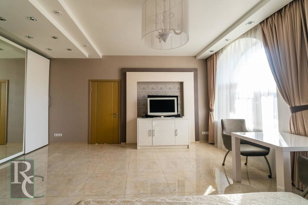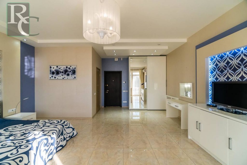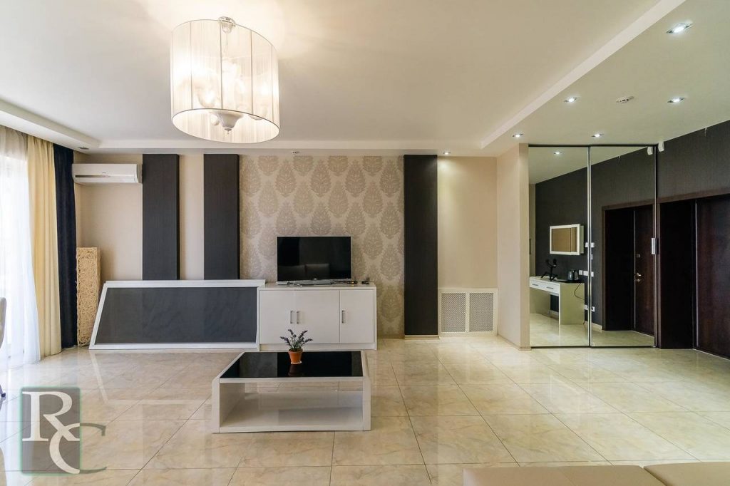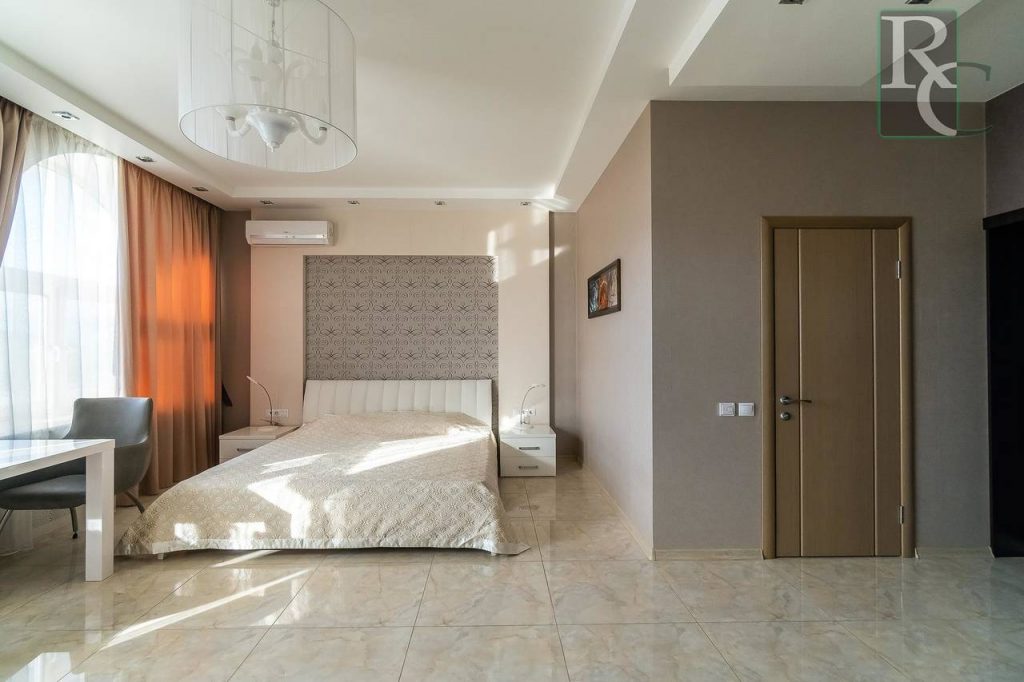 Общая площадь составляет 250 кв. м. Каждая комната полностью автономна: имеет свою дверь с электронным замком, санузел, бойлер, – и может быть использована как отдельный гостиничный номер. Апартаменты расположены на 3 этаже 4-этажного дома, который находится всего в 20 метрах от пляжа севастопольской бухты Омега.