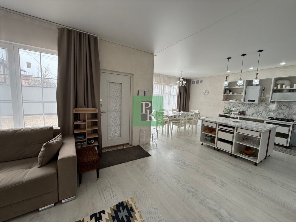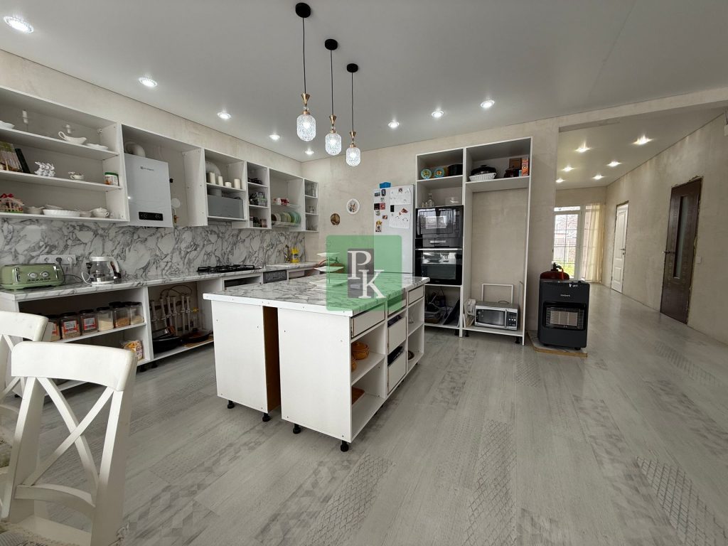 Дом 136 м2 на участке 4,2 сотки, одноэтажный. Расположен в г. Севастополь, Нахимовский район, ТСН СТ“Кача”. Коммуникации: 15 кВт электричество, водоснабжение городское, отопление электрическое, газ – ждем врезку с горгаза, септик.