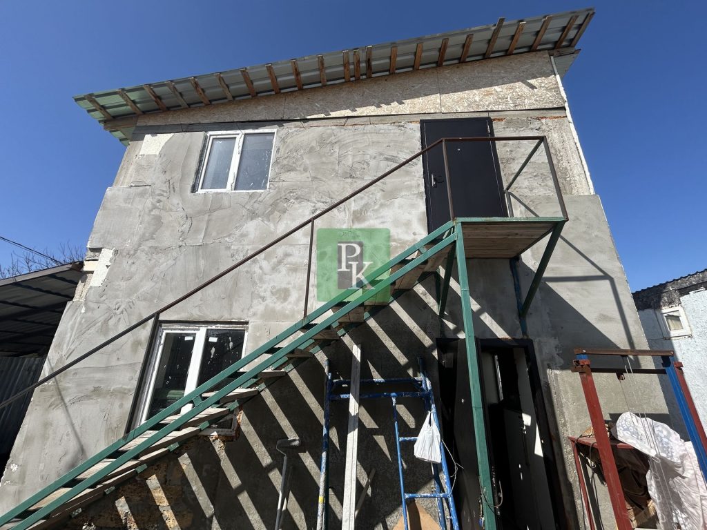 Дом 120 м² на участке 4 сотки, двухэтажный. Расположен в г. Севастополь, Гагаринский район, ТСН СНТ “Фрегат”. Коммуникации: электричество, вода привозная, септик, газ в перспективе.