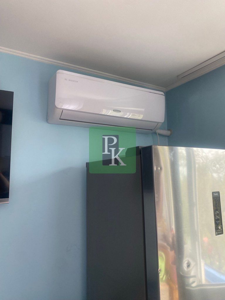 В квартире установлены пластиковые окна, кондиционер, кухонный гарнитур, электро плита.