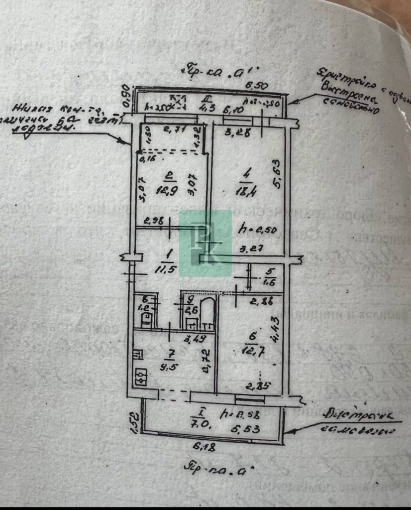 - Комнаты: 12,7 + 18,4 + 9,3 м2