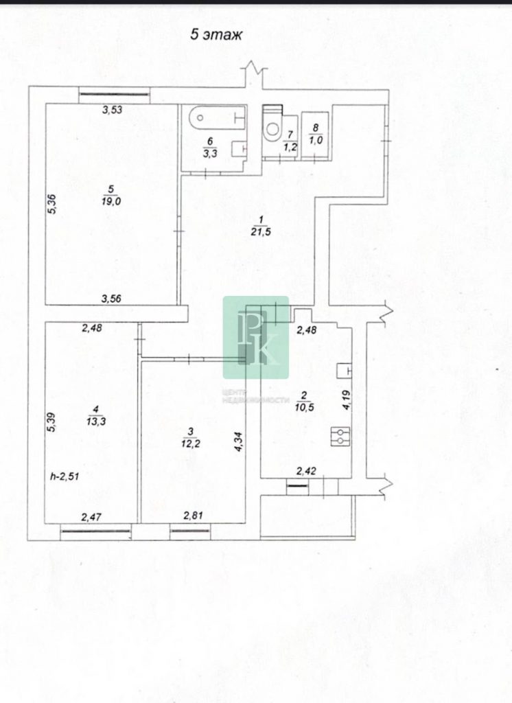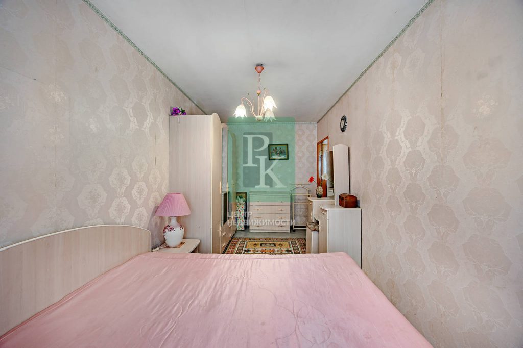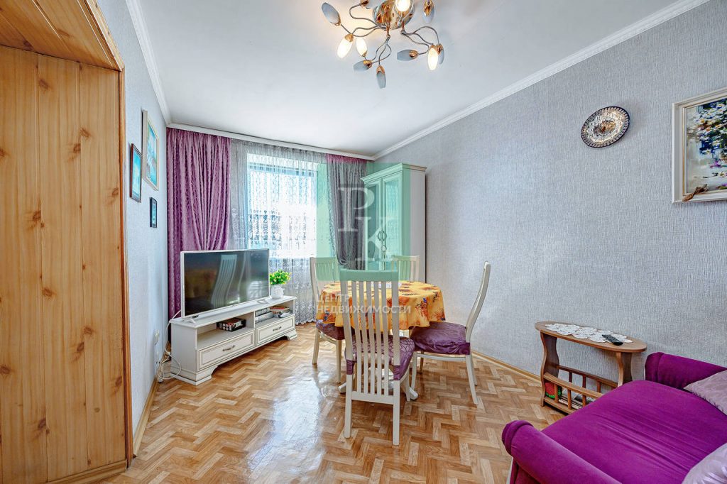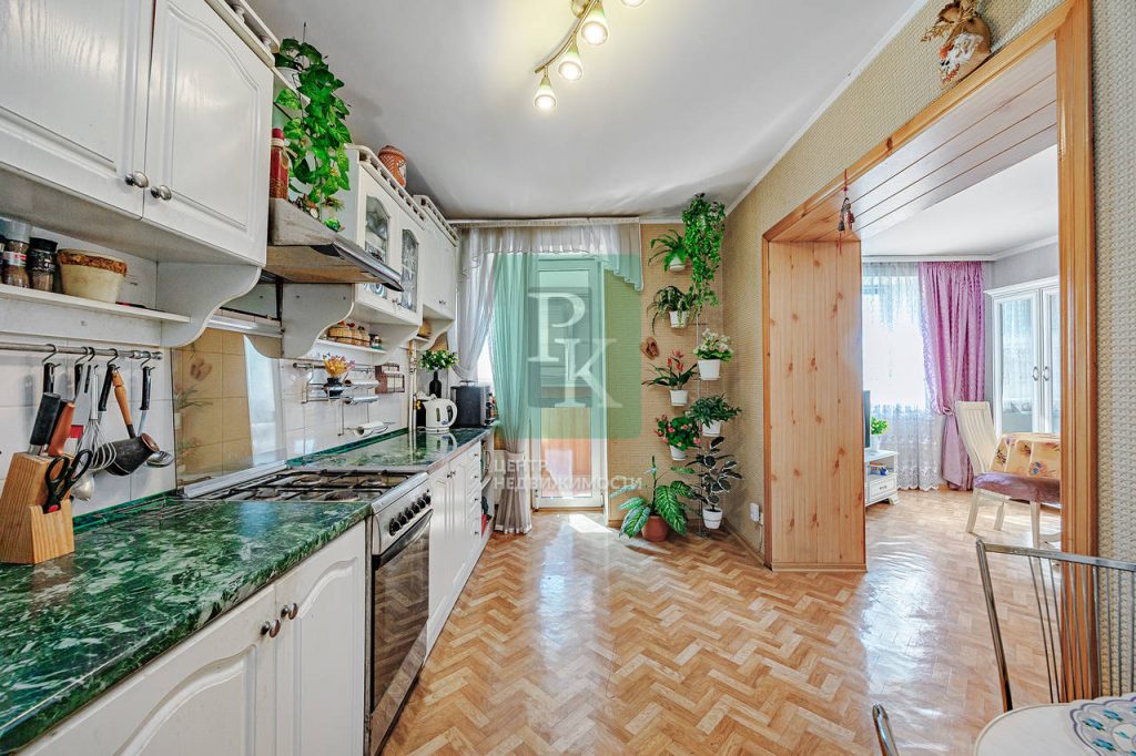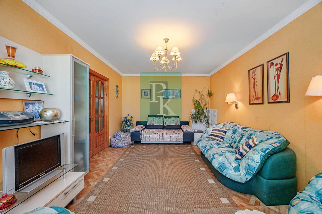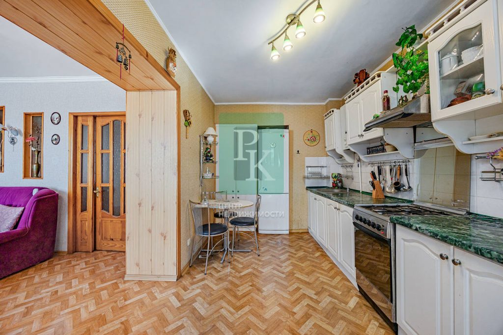 Трехкомнатная квартира 82,8 м2, на 5/5 этаже дома, с просторной кухней 10,5 м2. Расположена в г. Севастополь, Ленинский район, пр-кт Генерала Острякова, д. 1.