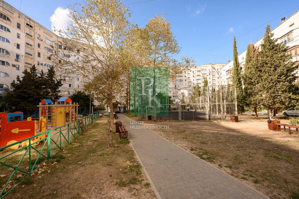 Тихий ухоженный двор с детской и спортивной площадками и достаточным количеством парковочных мест.