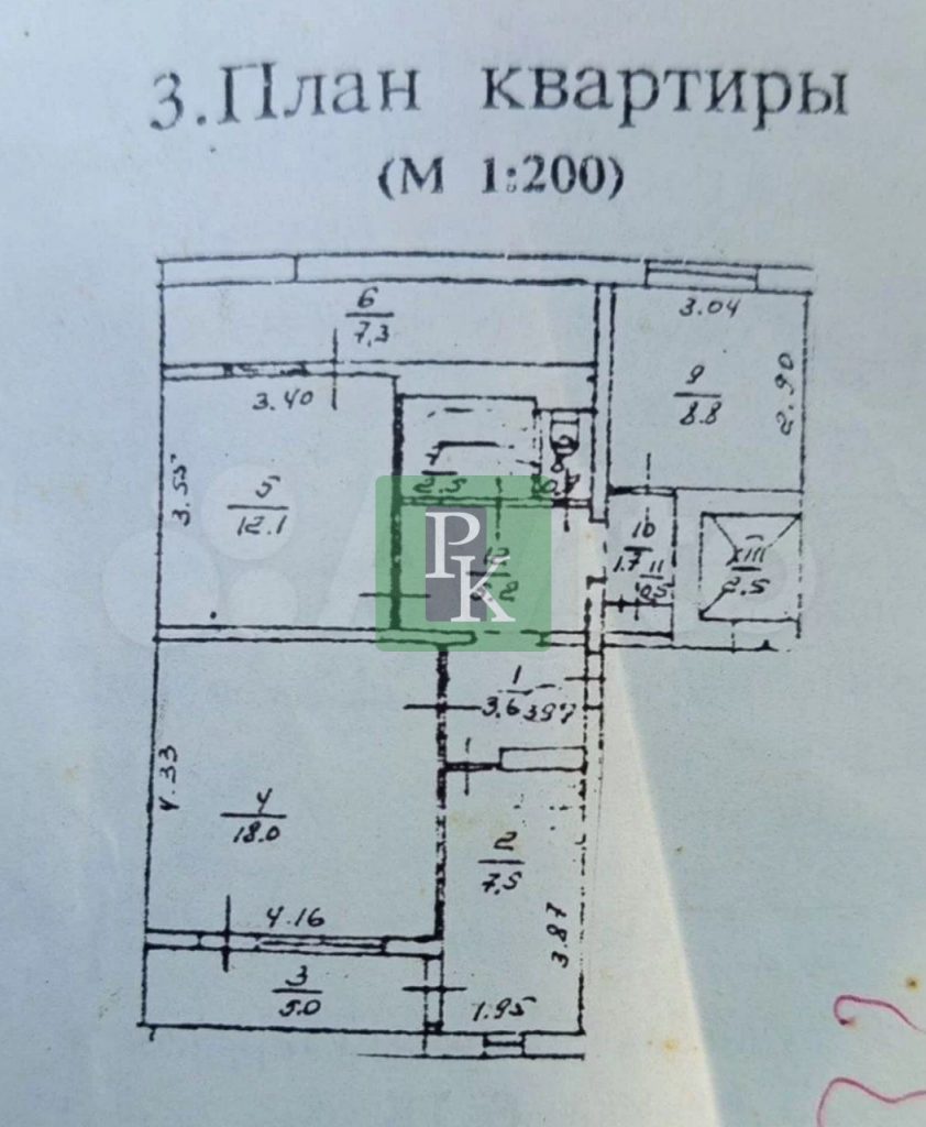 Жилая площадь – 38,9 м² (18,0 + 12,1 + 8,8)