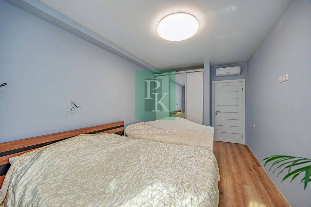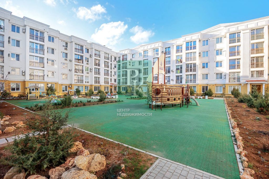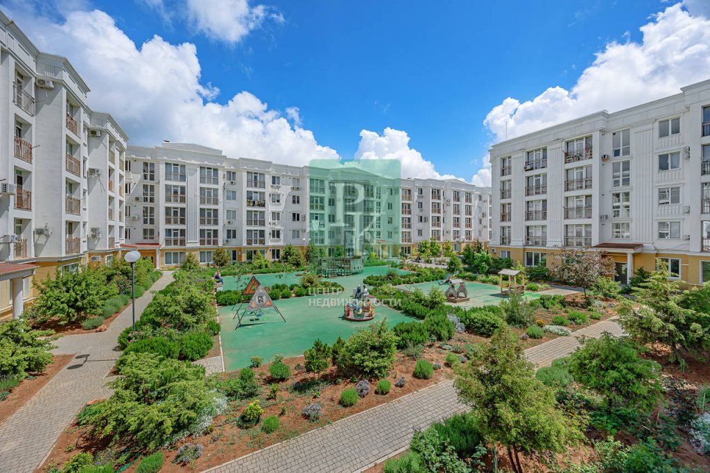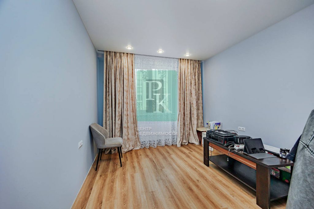 Трехкомнатная квартира 87,4 м2, на втором этаже пятиэтажного дома. Расположена в г. Севастополь, Гагаринский район, улица Челнокова. Видовая квартира в сданном доме (2019 года) современного комплекса бизнес-класса ЖК «Олимпия».
