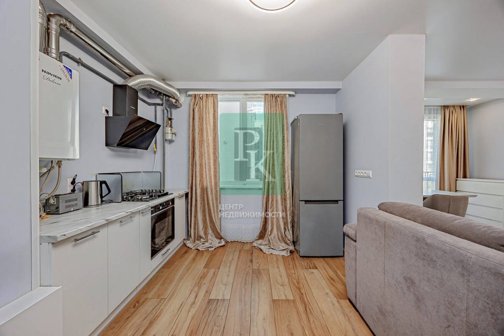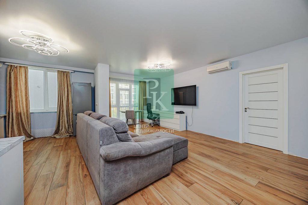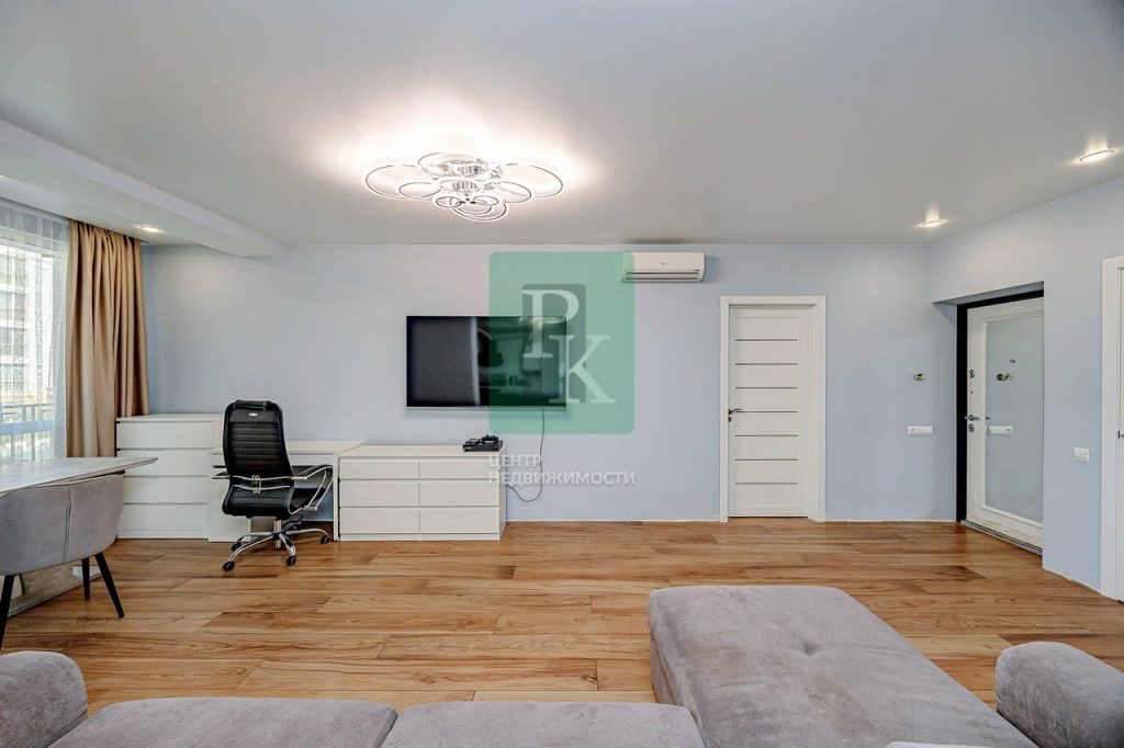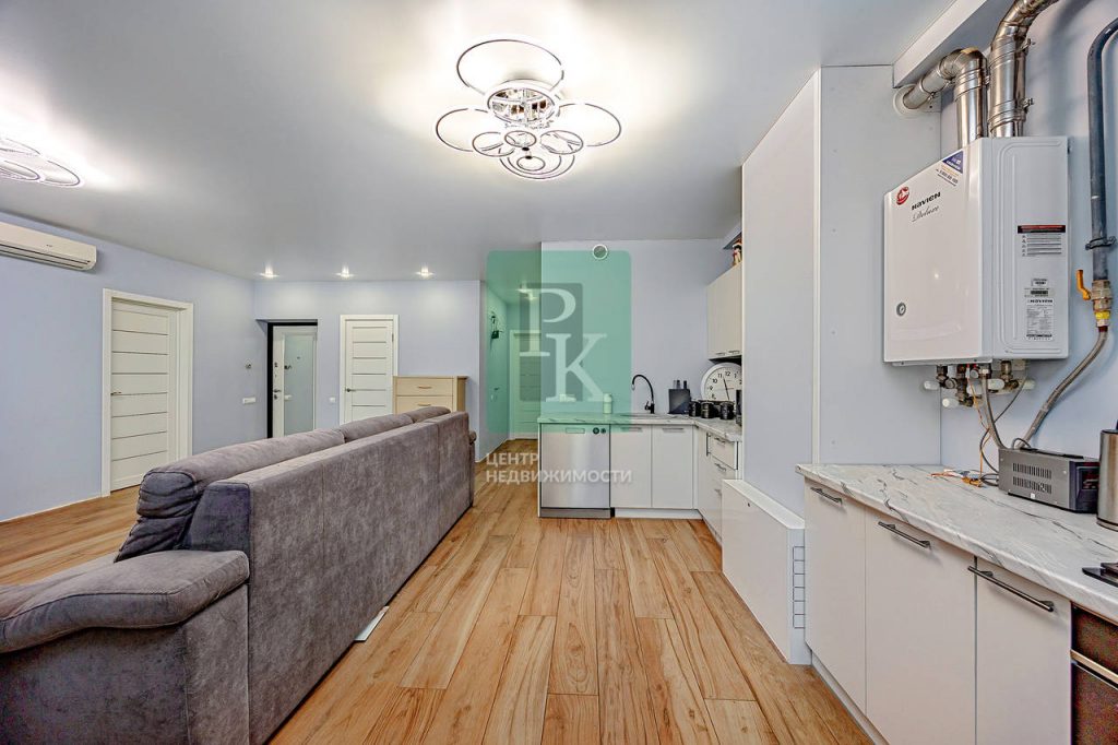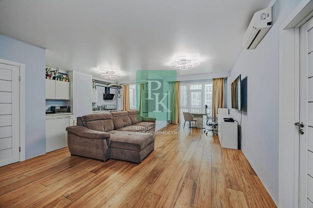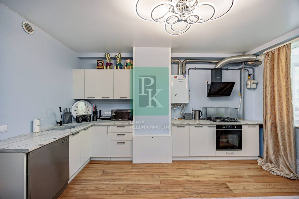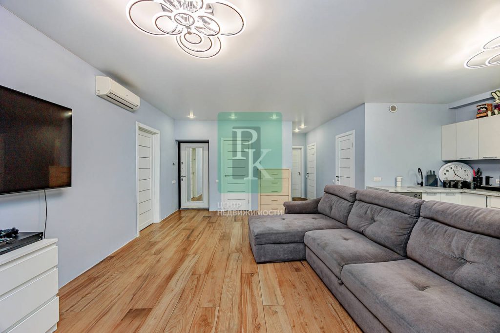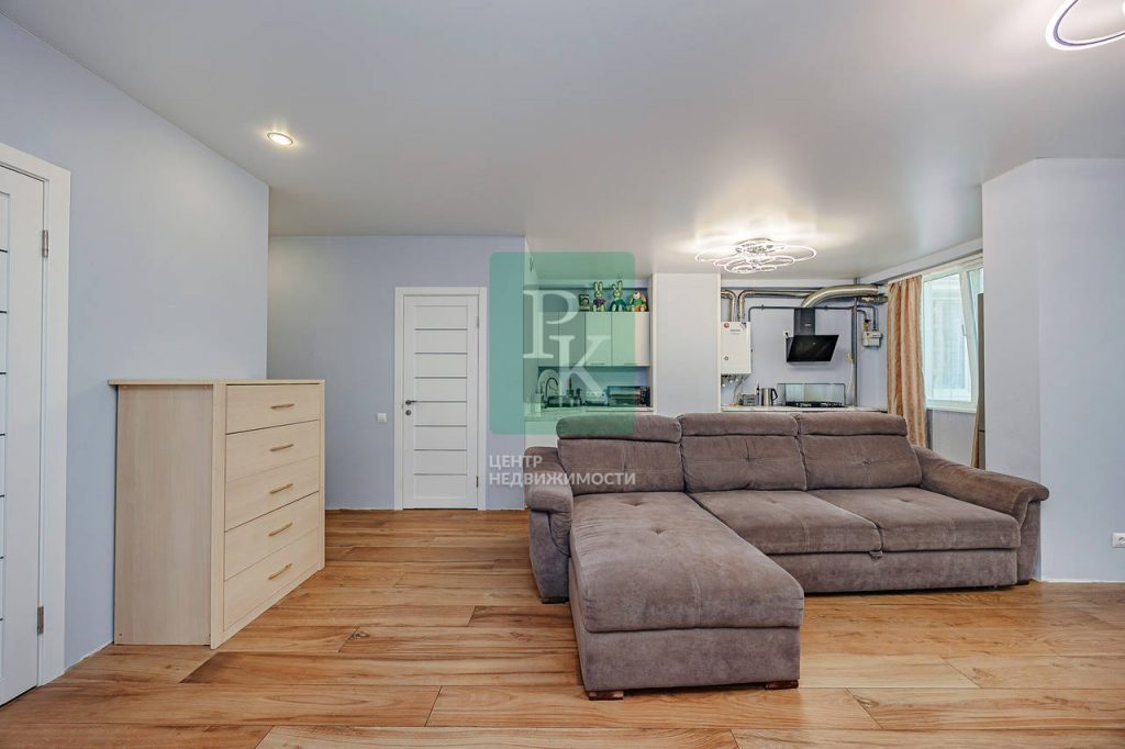 Трехкомнатная квартира 87.4 м2, на 2/5 этаже дома, с просторной кухней гостиной 37м2. Расположена в г. Севастополь, Гагаринский район, улица Челнокова, д 17 к 1.