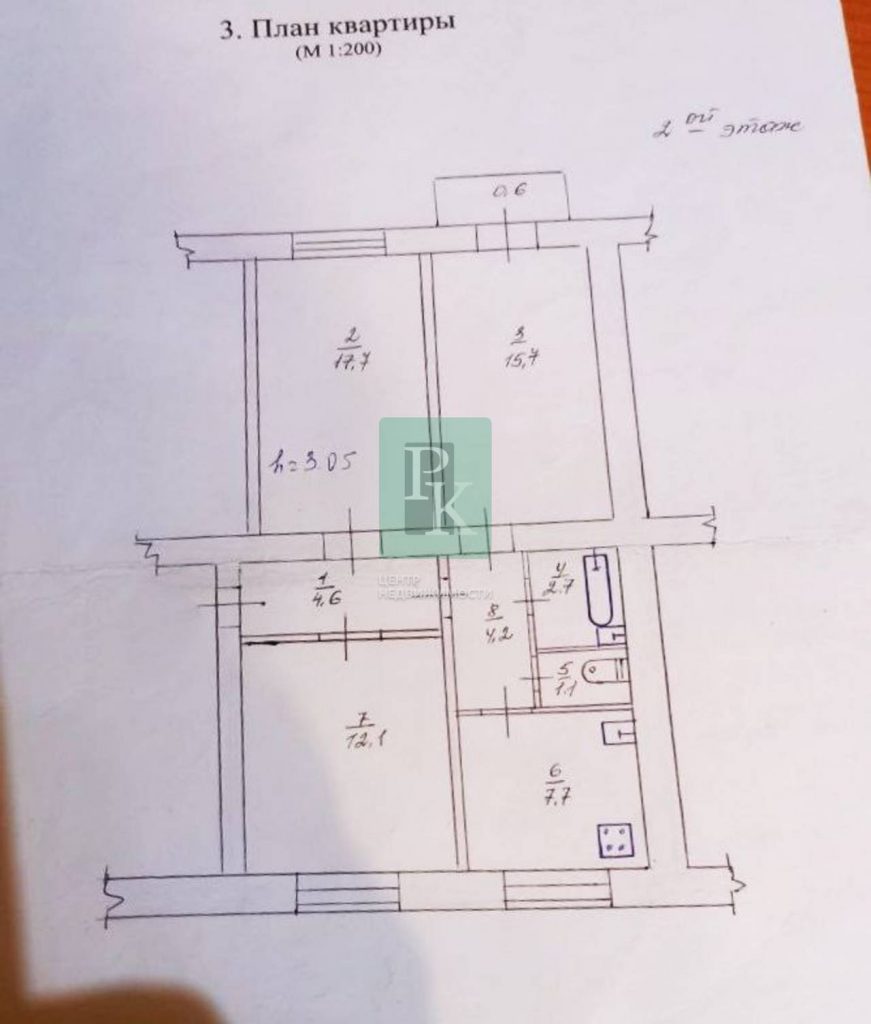 Трехкомнатная квартира 66,4 м2, на 2/2 этаже дома. Расположена в г. Севастополь, Балаклавский район, ул. Крестовского, д. 5.