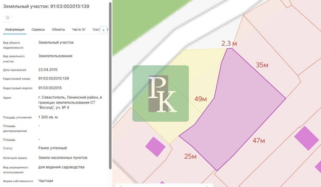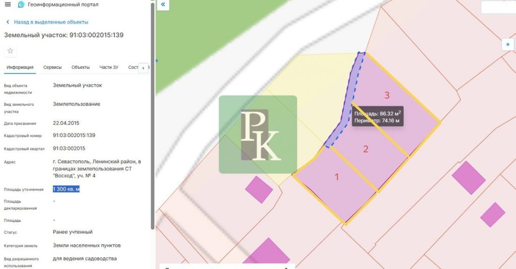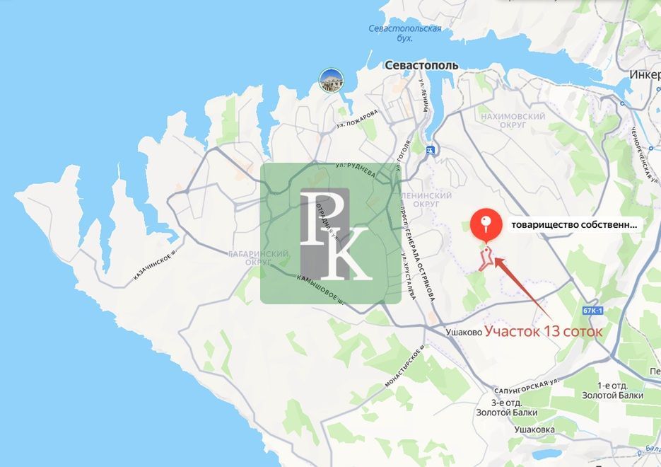 Участок 13 соток (СНТ) расположен в г. Севастополь, Ленинский район, Максимова дача, в границах землепользования СТ “Восход”, уч. № 4. Участок ровный и правильной формы. Подъезд по грунтовой дороге.