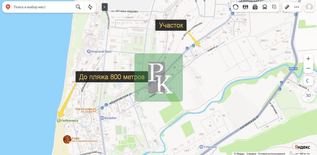Удобное расположение участка позволяет жить с комфортом. До песчаного пляжа – 800 м., остановка общественного транспорта рядом с участком. На северной стороне г. Севастополь, до которой 5 минут на авто, расположены: продуктовые магазины, больница, аптеки, реконструированный парк “Учкуевка”, школы, садики, АЗС, строительные магазины, рынок, автостанция, банк, паромная и катерная переправы до центра города.