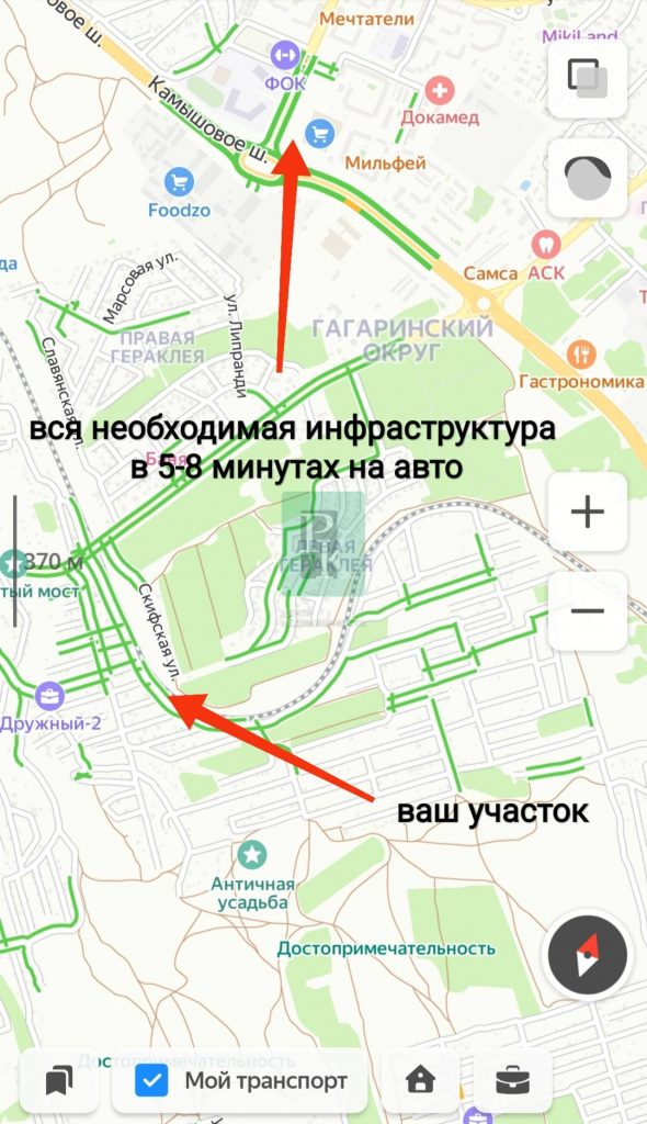 в 10 минутах на авто от ул. Тараса Шевченко, где есть вся необходимая инфраструктура: школы (Экотех), садики, гипермаркет «Метро» и все необходимые сферы услуг.