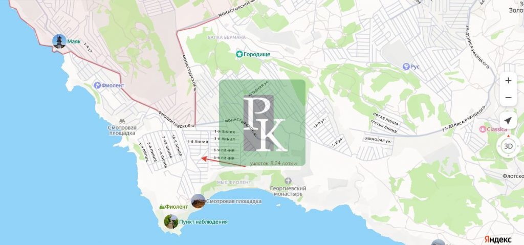 Участок находится в районе с развитой для комфортной жизни инфраструктурой. Удобные широкие подъездные пути. Расположен в районе Т-образного перекрестка, где расположены магазины, аптеки, пункт Waldberries. До ближайшей остановки автотранспорта и магазинов 10 минуты пешком через СТ Царское село. В пешей доступности старая смотровая площадка и Свято-Георгиевский монастырь, пляж Царское село и Яшмовый пляж, Грот Дианы. В 10 минутах езды на машине 5 км и выезд на Ялтинское шоссе и Балаклаву.