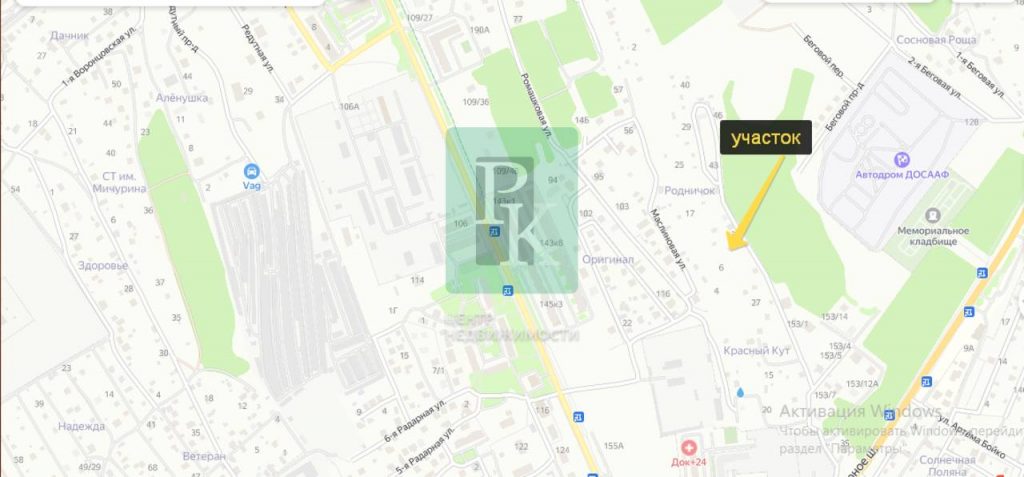Участок 8,6 сотки (СТ) в г. Севастополь, Нахимовский район, СТ “Родничок”, ул. Маслиновая. На территории имеется дом под реконструкцию. Подъезд на участок с двух сторон: со стороны ул. Маслиновая – асфальт, с ул. Н. Кисляка – укатанный грунт.